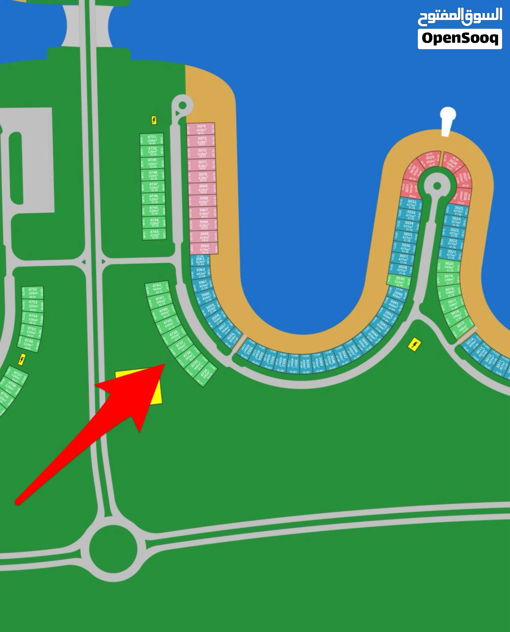 اعلان رقم 276708213 للبيع ارض ممتازه بالمرحلة الخامسة صف ثاني من البحر بطن و ظهر و ارتداد مقابل منفذ البحر سعر و موقع و مساحة رقم 4737 مساحة 545 م