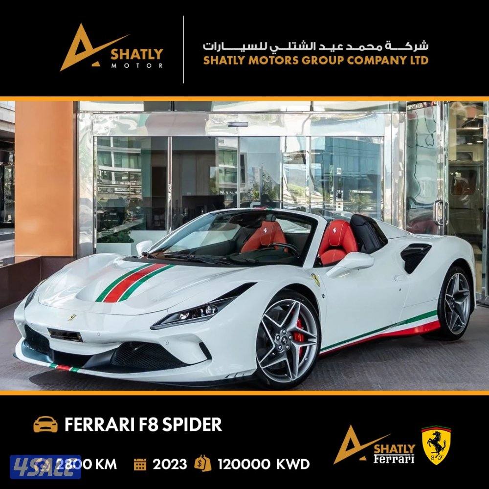 السعر: ١٢٠ ألف د.ك - فيراري SPIDER F8 موديل 2023 ممشى وعداد 2800 كيلو حصان 710 HP عدد الاسطوانات 8 سلندر اوروبي السعر 120000 دينار كويتي مجموعة محمد عيد الشتل